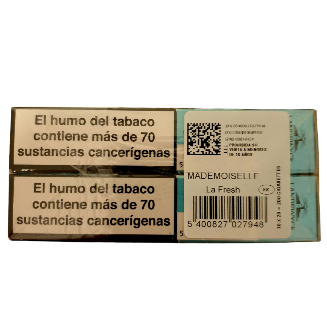 Mademoiselle La Fresh cigarettes offer a light and subtle menthol tobacco experience. Made with a balanced blend of Virginia, Burley, and Oriental tobaccos, they offer a smooth and delicate taste, ideal for those who prefer a less intense smoke.